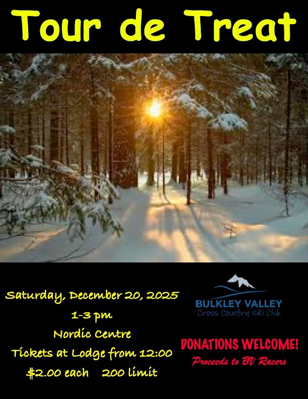 Tour de Treat, Saturday December 20 from 1:00 to 3:00 pm. Only 200 tickets will be sold. Must have valid season or day pass to participate.